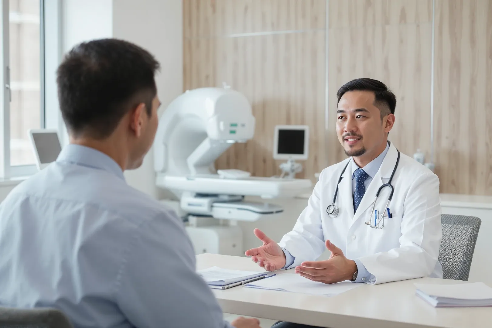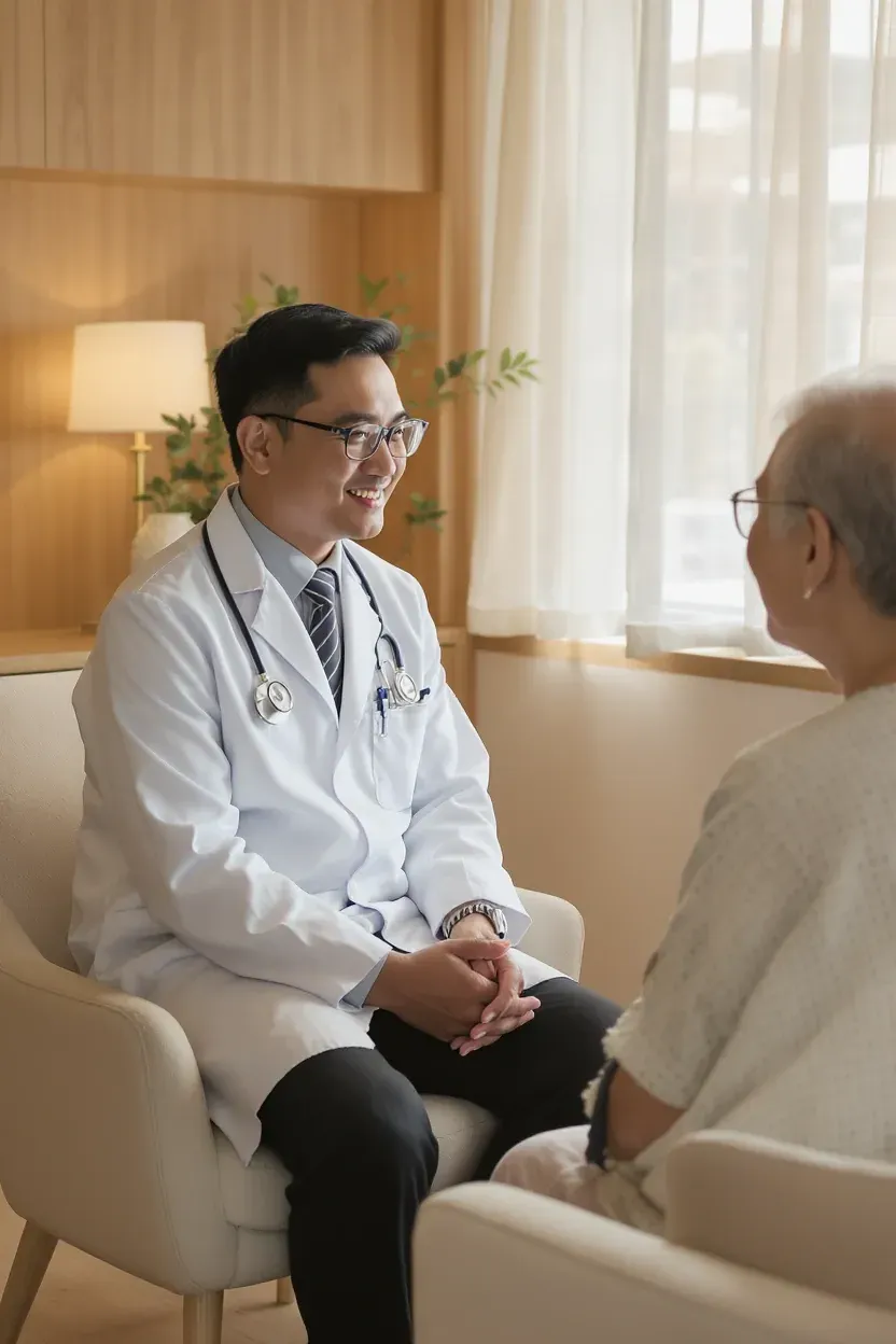 Setelah registrasi, tim dokter kami akan membantu mengenali kondisi kesehatanmu lebih dalam melalui sesi konsultasi, pemeriksaan fisik, hingga tes diagnostik yang relevan. Kami memastikan setiap keputusan medis dibuat secara akurat dengan standar global. Proses konsultasi dan diagnostik kami: